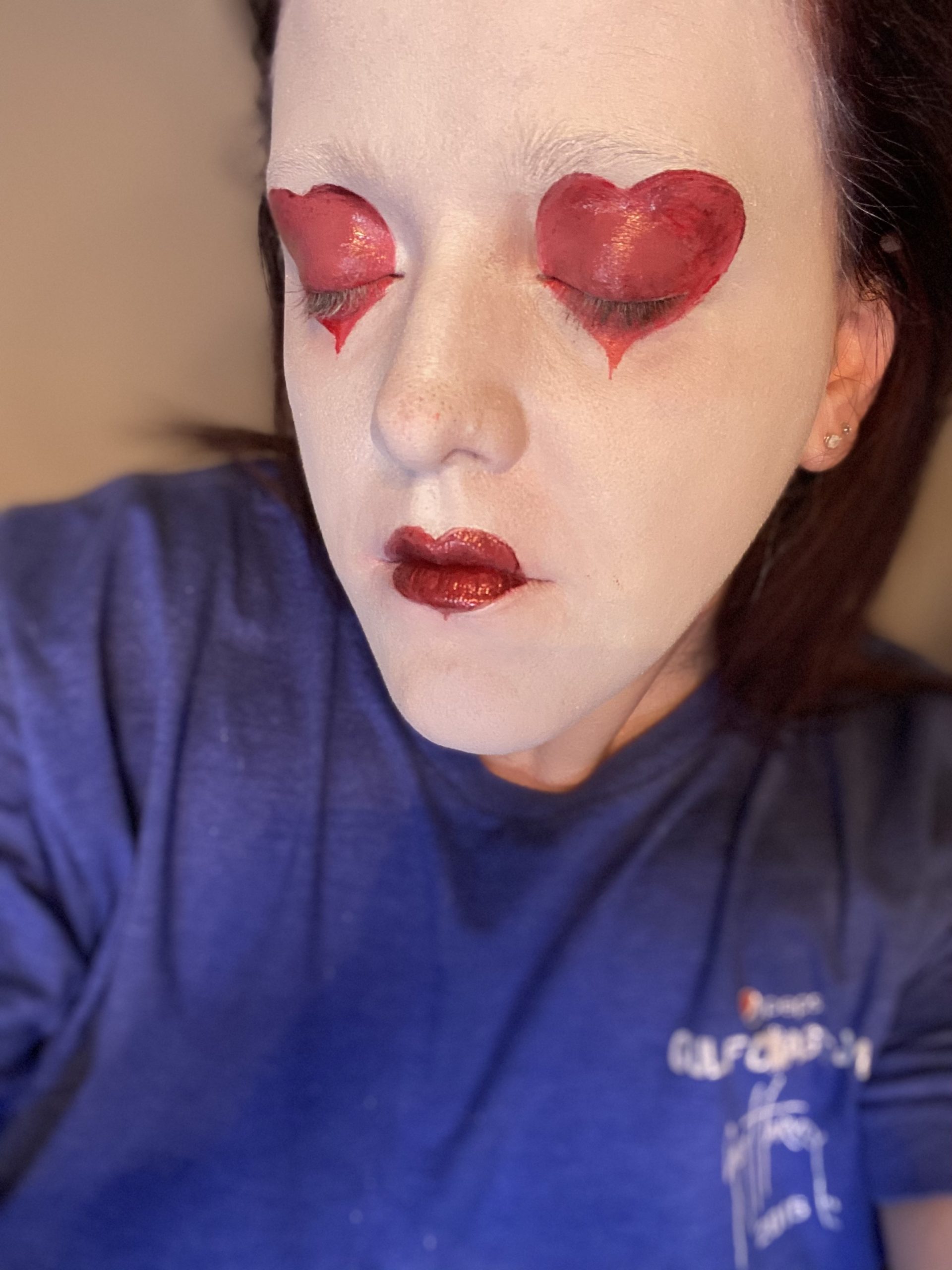 So… throughout this journey, I have learned that I sometimes lack creativity when it comes to costume makeup. This look right here was by far the worst look I’ve ever tried to create. I’m not sure what I was going for… Maybe a Queen of Hearts theme? Either way, this one definitely did not exactly…